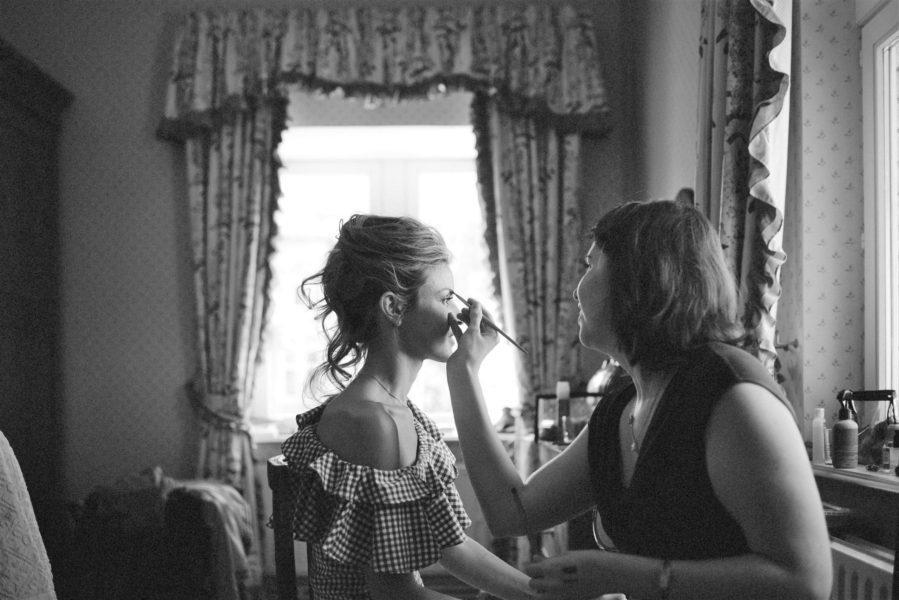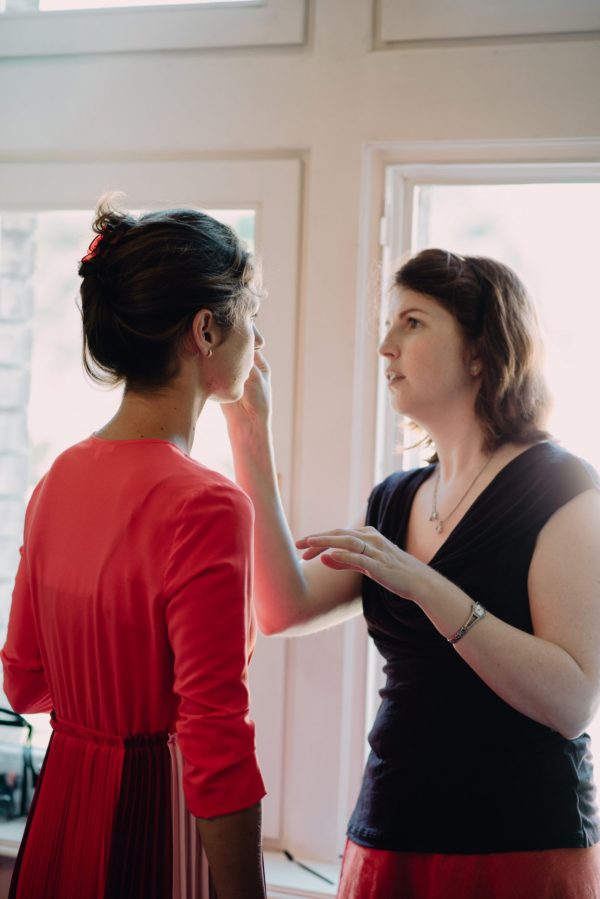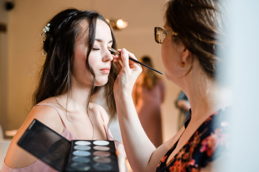 * le jour J: le maquillage de la mariée + 2 personnes minimum (la maman, une sœur, une témoin): comptez 30min / pers