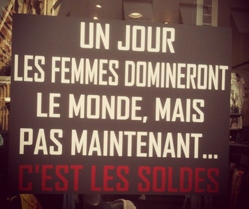 J’aime beaucoup cette image pleine d’humour… Eh oui, ça y est, c’est reparti. Les soldes sont là, et la frénésie recommence. Beaucoup sont impatients d’aller faire un tour dans leurs magasins favoris, dans l’espoir d’y dénicher l’objet rare à moindre prix. Pourtant, et bien que l’avantage financier reste indéniable, je ne fais plus les soldes…